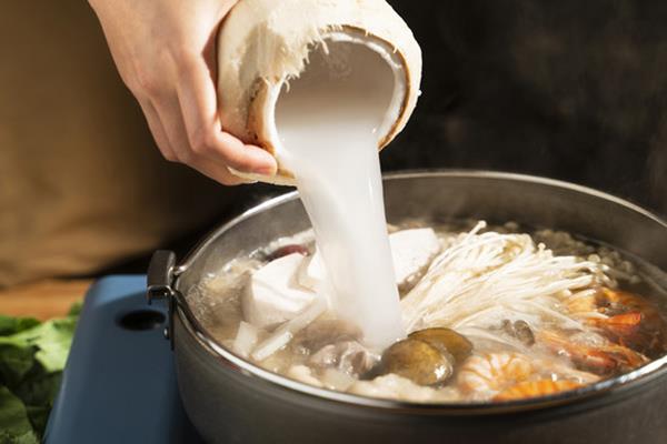 椰子雞清甜蜜味又暖胃的做法步驟:1.準(zhǔn)備食材,一只斬件雞,紅棗枸杞洗凈2.兩瓶椰子水倒進(jìn)鍋里3.加入紅棗枸杞一起燒開4.倒入雞塊5.蓋上蓋子煮開6.燒開后再燜3分鐘即可食用7.蘸上火鍋蘸料,超香。烹飪技巧不可煮久,不然雞肉老柴,也不需要放油鹽。