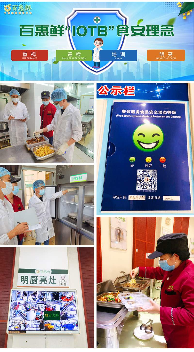 食材檢測、食品留樣、明廚亮灶、培訓(xùn)考核四重保障作為當(dāng)?shù)厥袌霰O(jiān)督局評定的食品安全A級食堂,該機關(guān)食堂在食品安全上實行高標(biāo)準(zhǔn)制度,百惠鮮食安專員每天定期進行廚房衛(wèi)生巡檢,對當(dāng)天要用的肉類、蔬菜、海鮮等食材進行抽檢,開餐前及時進行菜品留樣操作,保證食品安全及溯源渠道;食堂團隊成員定期接受食安培訓(xùn)和考核,合格方可上崗。疫情期間,每日餐廳消毒、查體溫、嚴(yán)格記錄每日食材的來源,并全部公開透明化,供大家監(jiān)督。