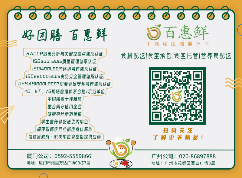 食堂承包:食材集中統(tǒng)一采購、配送,直接對接蔬菜基地、養(yǎng)殖基地等農(nóng)產(chǎn)品生產(chǎn)基地,既降低了食材采購成本,又保證了食材的新鮮度,物美價廉;團(tuán)膳公司配備設(shè)施齊全的食材農(nóng)殘檢測室并及時公布數(shù)據(jù)分析結(jié)果,保障食品安全。