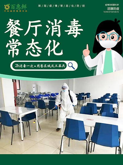 百惠鮮膳食安全部根據(jù)團(tuán)膳行業(yè)特點(diǎn)及疫情變化態(tài)勢(shì),持續(xù)更新《百惠鮮防疫防控手冊(cè)》,從食材來(lái)源到餐廳食安管理制定了科學(xué)全面的防疫防控規(guī)定,并通過(guò)培訓(xùn)指導(dǎo)、海報(bào)宣傳、巡店抽檢、專項(xiàng)考核等方式嚴(yán)格落實(shí)防疫工作,確保各營(yíng)業(yè)點(diǎn)執(zhí)行到位。